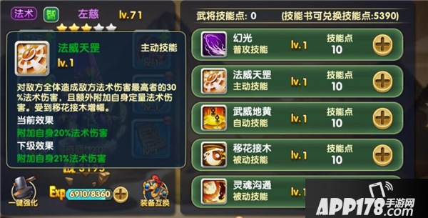 “移花接木”是左慈技能的特色,它的特点是能吸收敌方的攻击伤害,按百分比返还给对方,对敌方多名武将造成伤害。如果左慈能稳站前排,对方受到的反伤伤害也不容小视。