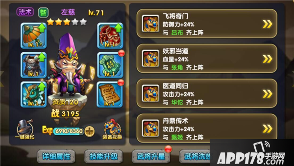 左慈其缘分也相当牛掰,他和神将吕布、华佗、张角、甄姬都有缘分属性加成,这使得左慈一上阵就能完美的替换任意一名武将。有了仙人左慈,制霸三国不再是梦!