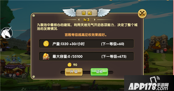 游戏主城中有农田和宫殿两大入口,是金币和粮草的主要产出点;主公可以通过升级农田和宫殿得到资源最大化收益。金币和粮草在游戏大部门系统中都会需要,尽量多的收集吧。