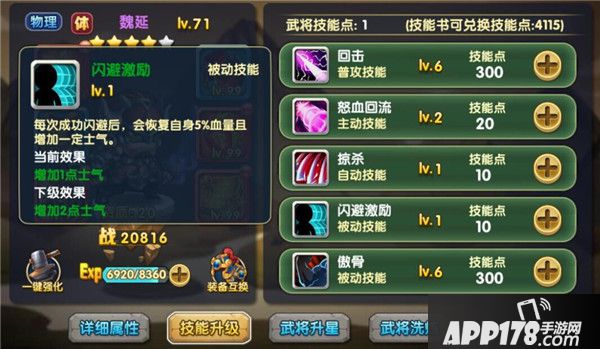 游戏中魏延的技能“回击”和“闪避激励”是一套完美的契合,“回击”增加闪避,而“闪避激励”则能让魏延闪避后回血。还有“怒血回流”和“掠杀”回血技能,强力武将稳站前排,奶妈都快要下岗了;更有“傲骨”反伤技能,如此强大的魏延你敢信么?