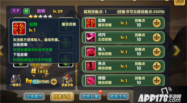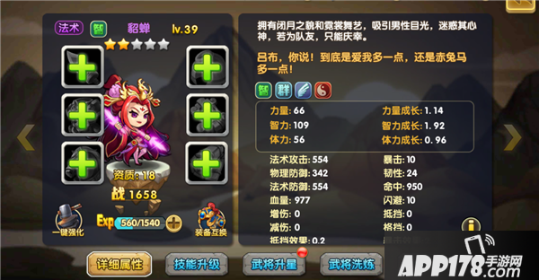 点评: 貂蝉的技能主要是针对武圣里面的男性角色,对于女性角色来说相对的伤害要低不少,所以上场的场合有限,并不是适用于所有的场合。