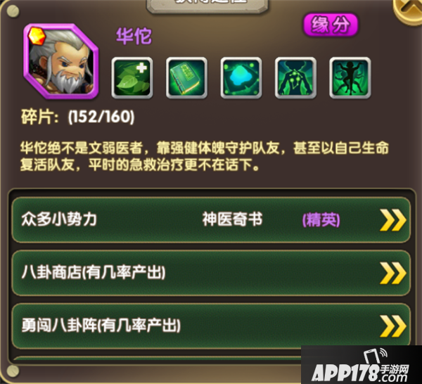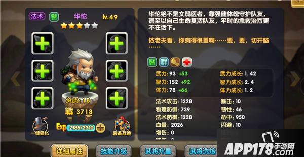 华佗,起始2星武将,拥有超人气的上阵率,在队伍当中主要是担当一个后方补给的位置,充分发挥他的高超医术。