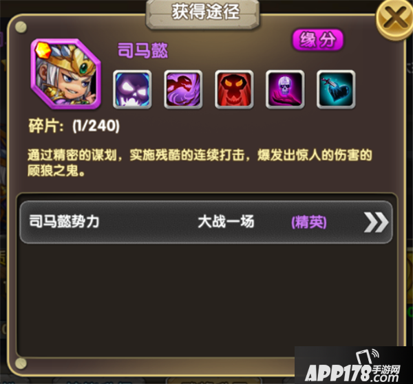 面板显示只有一个途径能够获取司马懿魂石,但相信在酒馆招募里面是有几率产生相应的魂石的。魂石不易,且得且珍惜呀~
