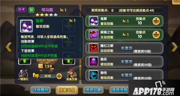 鬼眼:普攻技能,技能触发施放咒语,对全体敌人造成法术伤害,注意哟,是AOE伤害的呢