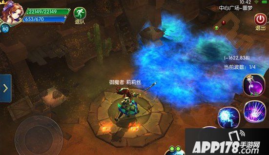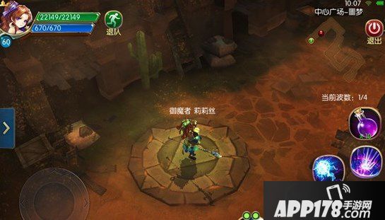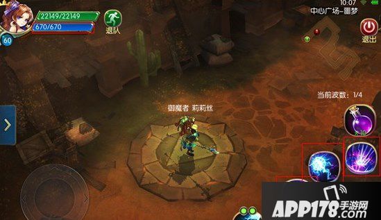 普通攻击旁的4个按钮为技能按钮,每个职业都有数个威力强大的技能,效果千变万化。点击按钮即可释放技能,释放技能需要消耗法力,法力不足则不能释放技能。