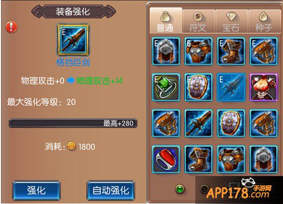 5级的时候可以强化装备了,先强武器和戒指,这两个部位加攻击的。任务给的蓝色装备应该可以强满,其他部位不要着急,特别蓝色装备,消耗大,