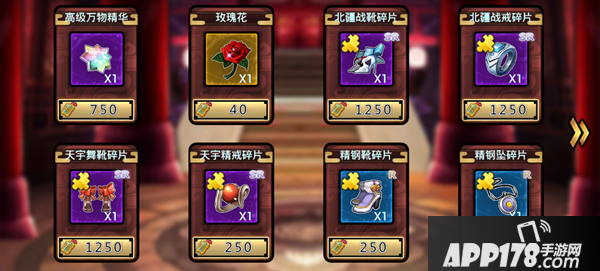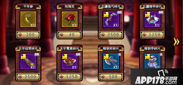 功勋商店:主要售卖稀有装备碎片,宝物强化精华和玫瑰花,功勋牌子需要通过千层宝塔才能获得,为了装备,刷吧!