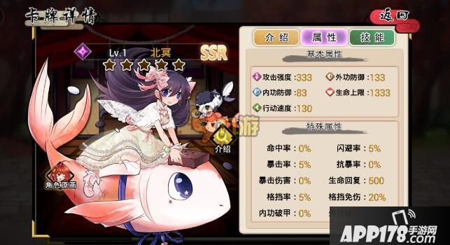 在武娘里面,有很多玩家都在问小编SSR卡北冥怎么样,初始属性和特殊属性怎么样?对于这个卡牌角色,有很多玩家都还不是很了解,那么在接下来APP178手游小编就来和大家详细的介绍一下,和小编一起去看看