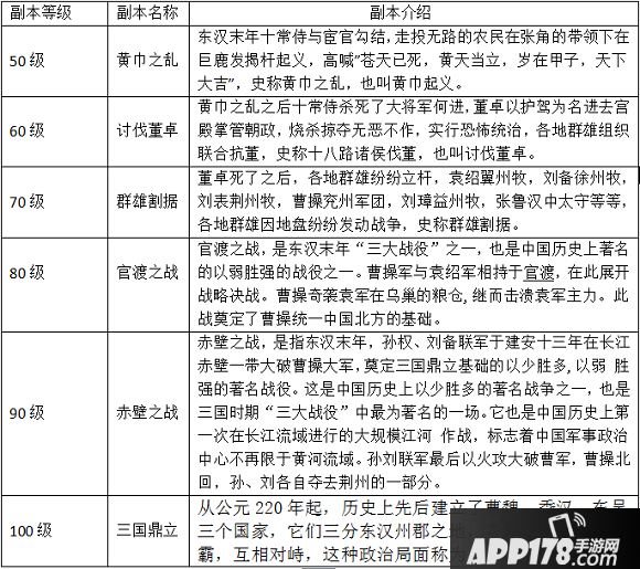 副本玩法在《武神三国志》中为每天必备的日常玩法,副本是根据三国历史形成的闯关类玩法,每天相同等级的副本只允许参加1次,每次挑战5位历史人物,历史人物的出现根据不同的副本,不同的副本是根据三国历史不同的典故形成,挑战完之后的玩家可以继续挑战,但是将无法获得副本奖励。