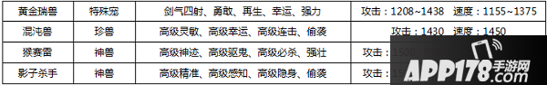 另外还有神兽和珍兽,以及特殊宠: