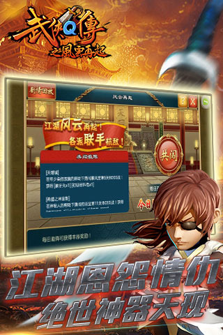 《武侠Q传• 风云再起》当然也会有绝世神兵的出现,神兵利器、古代阵法重现江湖,新装备与阵法将拥有特殊属性,通过合理的搭配与结合,使玩家弟子获得更强劲效果。拥有传说中的神兵利器,神秘的江湖阵法,一统江湖指日可待。