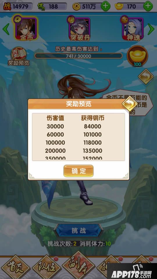 历史最高伤害达到要求可领取对应的元宝奖励: