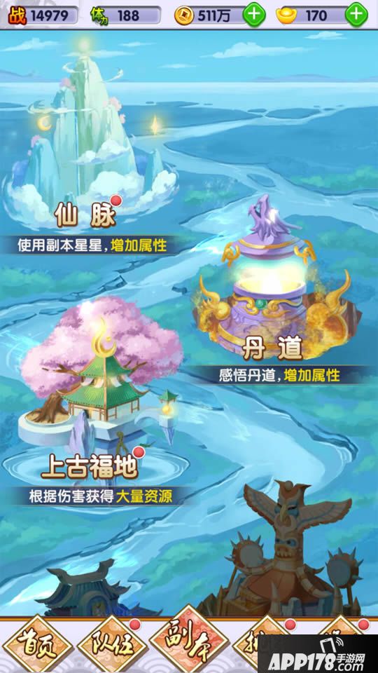 上古福地里分别可以获得:金币、突破丹、神魂;每天可调整3次,每次消耗10点体力;