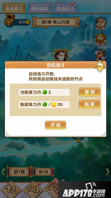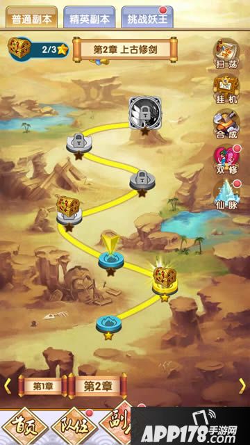 在普通副本中,除了每一关的概率掉落物品外,还可以拿星星。星星达到一定数目即可开本章宝箱,除此以外星星还可以在【仙脉】中用作感悟的原材料,所以尽量满星通关吧!