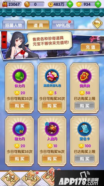 商城还可以购买各种道具。体力丹,耐力丹等应有尽有。