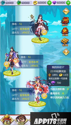 3.玩家每次超过自己的最高排名都会获得大量元宝,等级提升到下一阶段所需等级会自动跳转到下一个阶段。