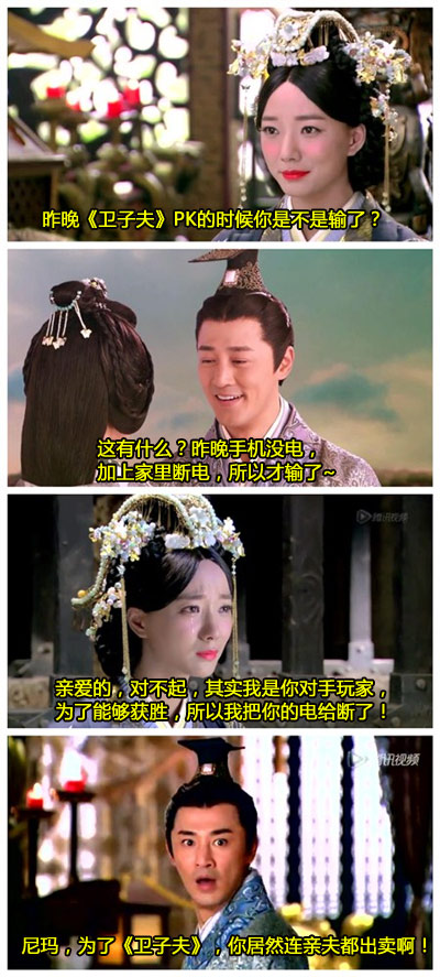 汉武帝与卫子夫各自悄悄玩起了《卫子夫》手游,汉武帝在昨夜PK对决时,因断电惨败于对手。翌日,汉武帝终于大彻大悟,原来这一切竟然是卫子夫的布局……