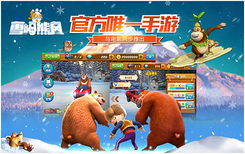 你有喜羊羊,我有光头强。《熊出没》作为近几年为数不多能够通过某菊审核、在电视上播放的国产动漫,其功力之深厚不言而喻。随着该系列第二部大电影《熊出没之雪岭熊风》的上映,其同名官方独家授权手游也逐渐进入玩家视线。与先前提到的所有作品不同,《熊出没之雪岭熊风》是一款赛车类游戏,你是否很难想象,熊大、熊二和光头强驾驶赛车进行极速狂飙、漂移过弯的场景呢?让小编告诉你……其实,小编也很难想象。