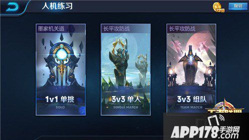 [人机练习]:分为[1V1单挑]、[3V3单人]、[3V3组队] 三种模式。