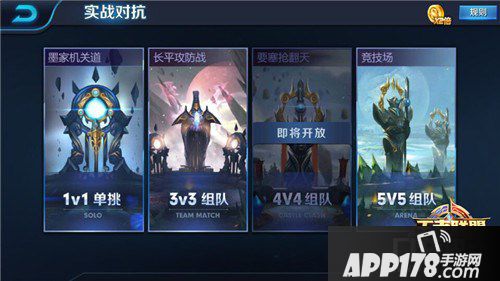 3、[实战对抗]:分为[1V1单挑]、[3V3组队]、[5V5组队] 三种模式,