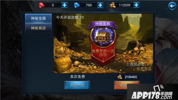 角色等级达到31级开启,神秘宝箱,每天可免费开启5次神秘宝箱,宝箱十连抽必得珍贵物品,vip等级的提升可以增加宝箱开启次数。