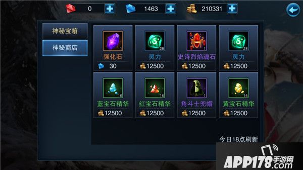 神秘商店,随机出售各类道具,每天8点、12点、18点、21点商店刷新。