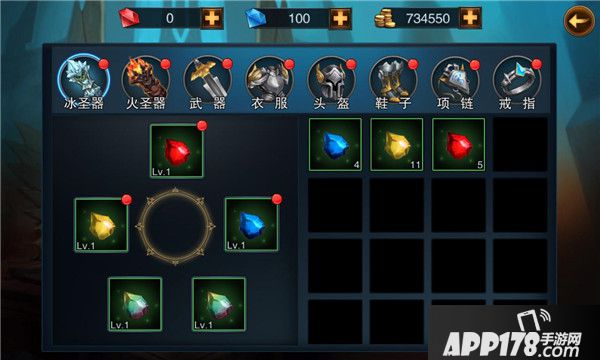一件装备(圣器)拥有五个宝石槽,开启宝石槽,即可镶嵌宝石;八件装备(包含圣器)共拥有40个宝石槽,全部镶满宝石,战力可得到大幅提升。