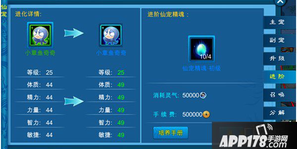 2. 精英仙宠:最多进阶到紫色,进阶需要中级精魂;