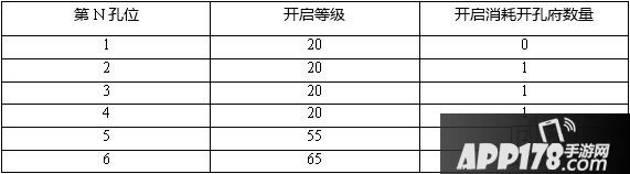 5、6孔位开启是有限制的,角色等级达到55级或者VIP等级达到VIP28开启第5孔,角色等级达到65级或者VIP等级达到VIP42开启第6孔。