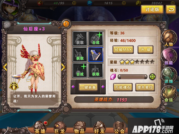 英雄分析:仙后座是前排爆发型物理输出英雄,物理伤害非常高。+6以后可以复活一次,续航能力优秀。另外她自带吸血光环,可以提升队伍的吸血能力,建议与物理输出型队伍搭配。