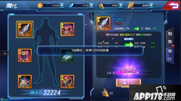 5)每件装备可以魔化的等级都有上限,每个魔化等级会有相应的经验值成长。玩家每魔化一次则增加相应的经验值,达到经验值后魔化等级会自动提升
