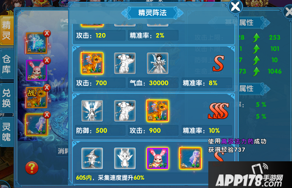 如果你以为携带的四只精灵品质越高就越好,那你就大错特错啦!精灵不仅能够提供战力加成,不同种类不同品质的精灵组成阵法后还能激活相应的阵法技能!从采集效果到攻城效果再到战技提升,阵法五花八门。如何选择品质最优,阵法技最好,这真是要煞费一番苦心啊!