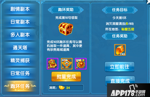 日常任务每天有20个,系统随机根据等级分配任务,完成进行下一个任务,日常跑环每天有100环,同样是系统根据等级随机分配,完成后可进行下一环任务,并且每10环有特殊奖励