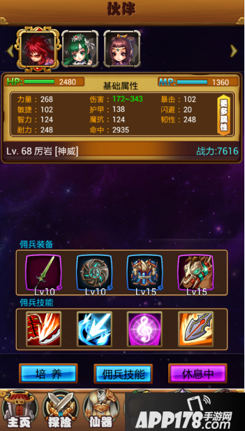 技能挂机 用的人并不多,大家可以根据自己的角色重点培养一个小伙伴就可以了。 虽然玩家雇佣小伙伴出战不用支付佣金。但是玩家却要给自己的小伙伴穿戴装备。每个职业的小伙伴都拥有四个可以穿戴装备的部位,战士职业的小伙伴可以穿戴的部位装备包括剑、盾牌、胸铠以及护腿;猎人职业的小伙伴可以穿戴的部位装备包括弓、箭筒、胸铠以及护腿;法师职业的小伙伴可以穿戴的部位装备包括杖、手册、胸铠以及护腿。玩家在挂机当中或者装备熔炼当中得到的不符合角色职业的高级装备可以给合适职业的小伙伴穿戴,这里提一下小伙伴的装备重点洗练耐力,其它属性 不是特别有要求。