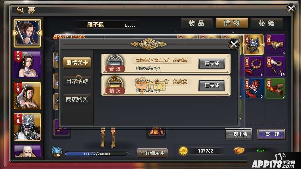 另附无常使快速获得方法:大家在每天任务都做完的时候。剩余的体力千万不要乱刷副本,要最大价值的利用好哦。刷下图中的副本,一天就可以获得7个信物。加上黑市,只需要短短的5天就可以得到一个金侠客以及两本金色技能书!心动不如行动哦。