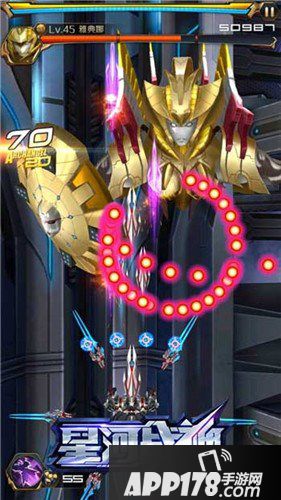 躲避方法:躲在屏幕下方,等待子弹逐渐扩散开来后,从空隙躲避,或者使用机甲必杀技。