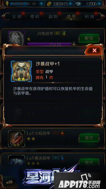 沙暴战甲在获得护盾时可以恢复机甲的生命值和装甲值,属于按时恢复型的。即拥有战甲便可以恢复生命值和装甲值,不需要其他条件的制约。