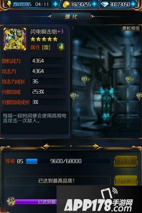 星河战神僚机闪电瞬击炮满级属性介绍