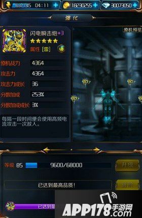 星河战神之僚机闪电瞬击炮满级属性