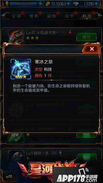 在星河战神里,很多小伙伴都不知道科技有什么用,应该怎么用。科技大致分为两个类型:攻击型和恢复型。面对这两种科技,我们应该如何选择呢?接下来,小编以恢复性科技寒冰之泉和攻击型科技火焰通天炮为例,为大家讲解如何在战斗中选择有利的科技!