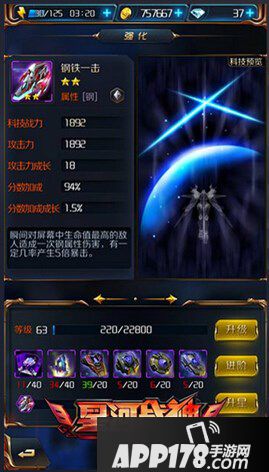 星河战神中,科技有什么作用呢?本作中科技也有不少,分有类别,今天我们带来的是钢系科技——钢铁一击,看看他有什么效果吧!