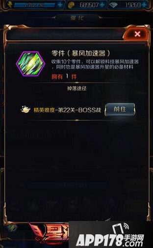 说在前面的是,土豪请无视本段攻略,平民玩家自觉站过来。让我们先从沙暴战机和暴风加速器的培养开始入手,沙暴战机是初始三星的科技,暴风加速器是初始二星的科技,从初始星级上来说暴风加速器更加适合新手玩家,毕竟更加容易得手。在零件的获得上虽然暴风加速器只有一个关卡,但是也在第22关,然后我们看看沙暴战机的,是在精英难度关卡的35和41关,都是属于后期的关卡,前中期根本没有能力去发育,所以从培养难度来说我们选择暴风加速器。