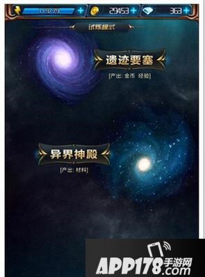 试炼模式中分两个地图,一个是遗迹要塞,一个是异界神殿。其中遗迹要塞主要产出金币、经验。而遗迹要塞产出材料等。