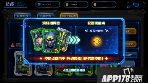 1、分解无用的指挥官卡牌可以获得技能点