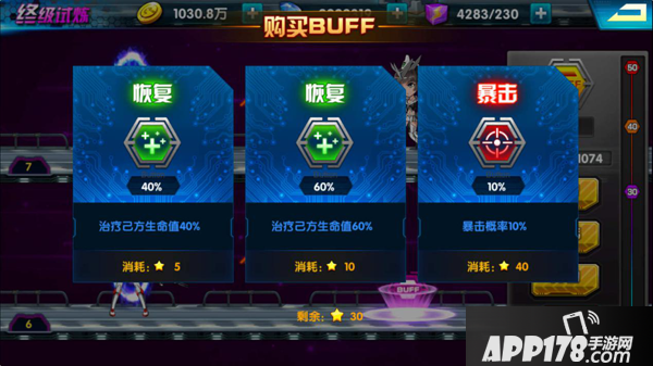 然后就是BUFF层的选择,小白建议,在攻击>伤害减免>暴击>防御>技巧情况下,回血和复活酌情选择。