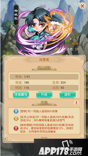 练霓裳,资质24,在橙色卡牌中属于较高资质,基础属性值较高。物理输出型,随着等级的提升,攻击力和防御能力都会有大幅度的提升,是最值得培养的橙色卡牌之一。