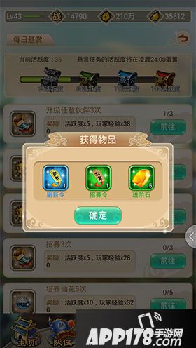 招募3次,可以获得活跃度x5,玩家经验x280;