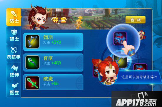 通过夺宝可以获得5大职业的腰带、裤子、鞋子三个部位的装备,每个装备需要抢夺到3个碎片才能进行合成获得。