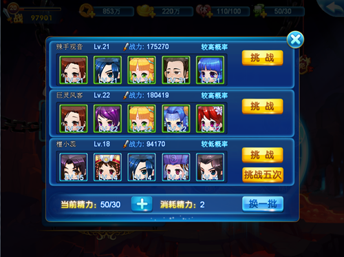 在此界面可以看到对手的阵容、等级、战力以及抢夺的成功率,点击右下角的换一批可以刷新可抢夺的玩家;