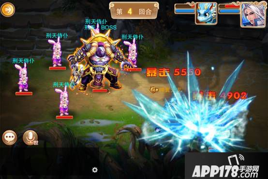 侍仆的攻击模式和刑天类似,都是穿插着群攻和普攻,但是伤害都稍有下降,但是5个加起来的伤害会比刑天的伤害高,和刑天一样侍仆的攻击也有几率给我方附上降低命中和攻击的DEBUFF。